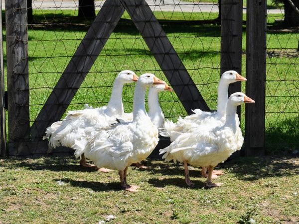 Introduced into Britain in 1859 from the countries surrounding the Black Sea and the lower Danube; The Sebastopol is now becoming a popular family farm goose in the United States. Sebastopol geese are easy to identify based on their feathers, which are curly. Due to the curls in their feathers, these geese are primarily flightless. Most Sebastopol geese are white, but they can be gray, buff, saddleback, or gray-brown. The breast feathers may be smooth or frizzy. One of the most distinctive characteristics of this goose is its blue eyes that stand out against its light feathers. Most of these geese also have elegant, rounded heads, long, slender, arched necks, and keelless breasts. Both the shanks and the legs are orange.